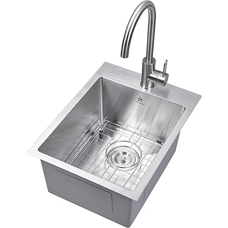 STARSTAR Workstation Ledge Top Mount/Drop-in 304 Stainless Steel Luxury Single Bowl For Kitchen,Yard, Office, Bar, Laundry Sink (15 x 20)