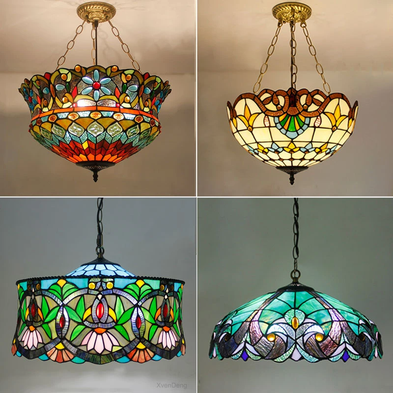 Tiffany Stained Glass Pendant Lights Vintage Mediterranean Hanging