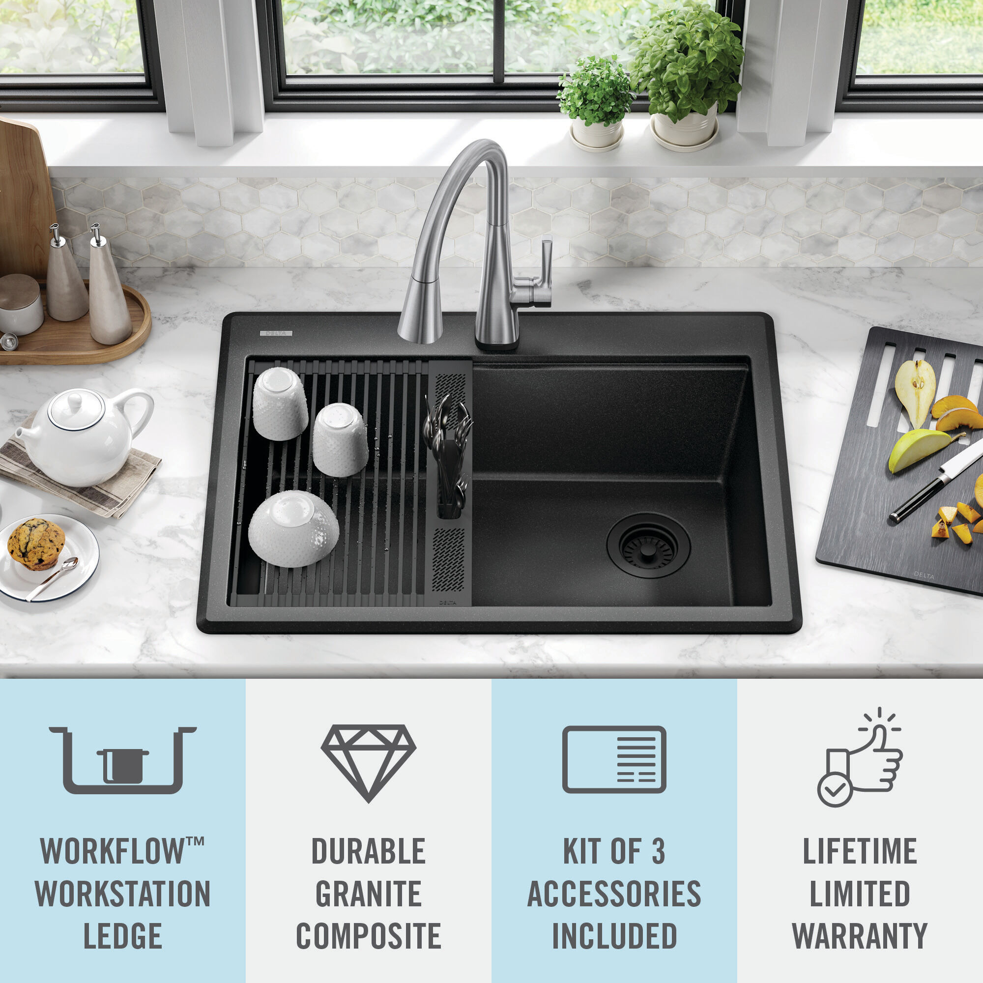 33u201d Granite Composite Workstation Kitchen Sink Drop-In Top Mount