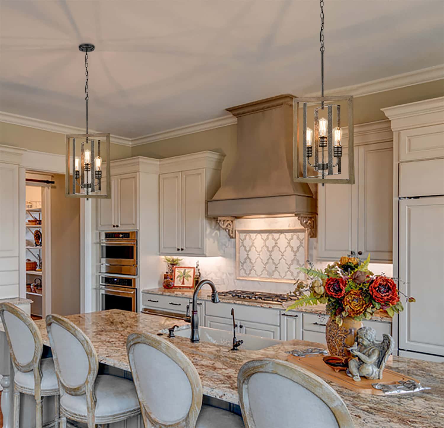 4-Light Farmhouse Pendant Lights For Kitchen Island
