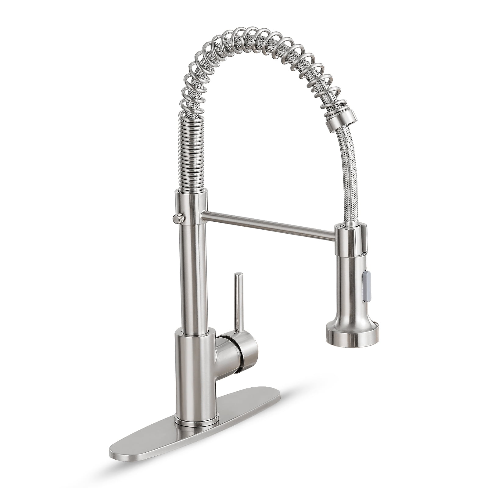 Kitchen Faucet Lead Free High Arc Spring Kitchen Sink Faucet with Pull Down Sprayer, Single Handle Single Lever Pull Out Kitchen Faucet,Brush Nickel