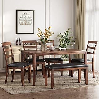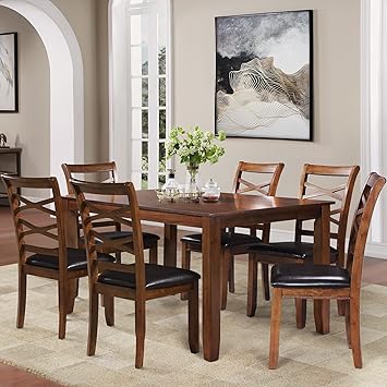 Dining Table Set for 6, Kitchen u0026 Dining Room Sets, Rubber Solid Wood, 60u0027u0027L × 36″ W
