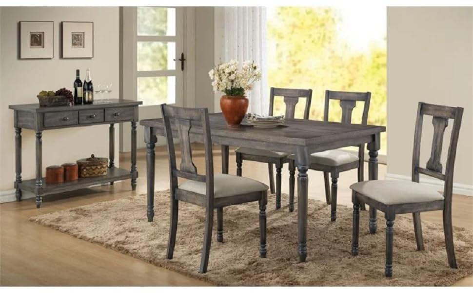 Best Master Katrina Solid Wood Rectangular Dining Table in Weathered Gray